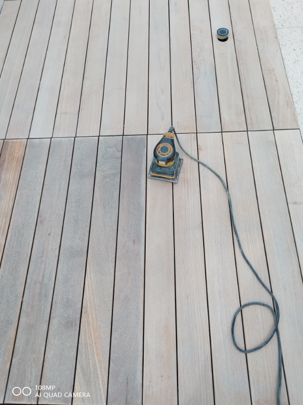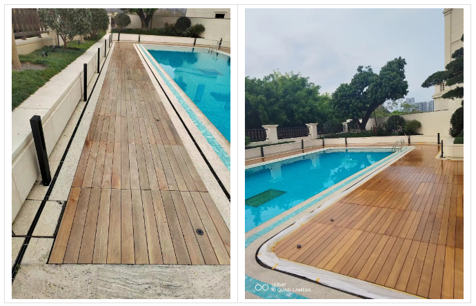 本次为广西南宁独栋别墅,阳台+庭院+泳池边柚木地板整体翻新,选用德国SAICOS赛克斯户外专用木蜡油,从清洁、打磨到上油养护,还原柚木天然肌理,打造耐水抗UV、持久温润的户外地板。